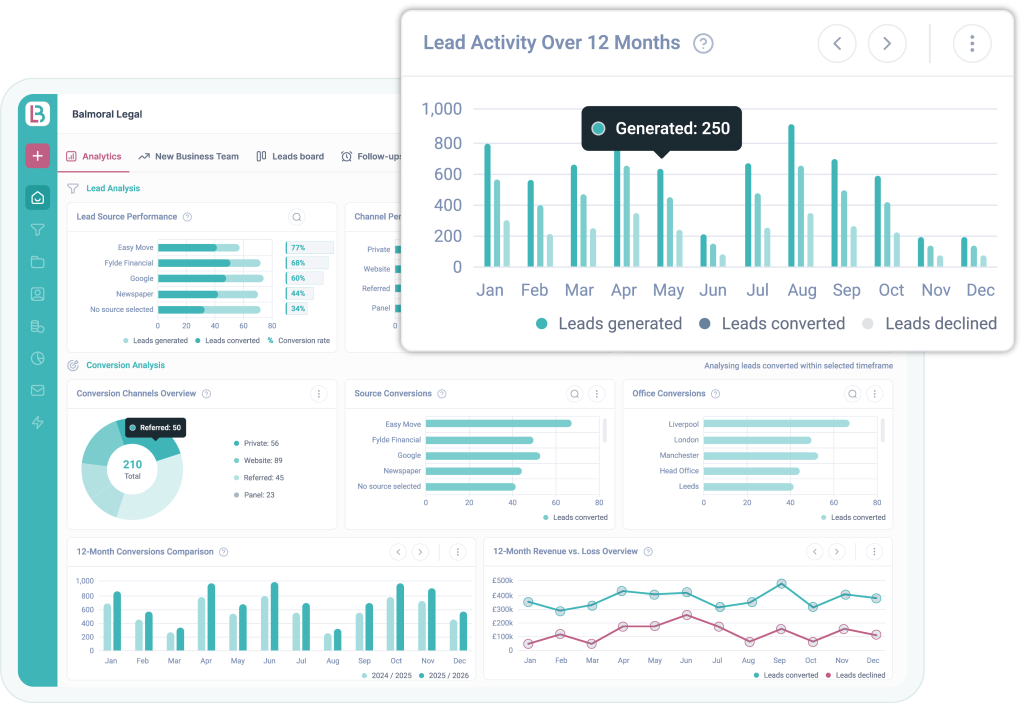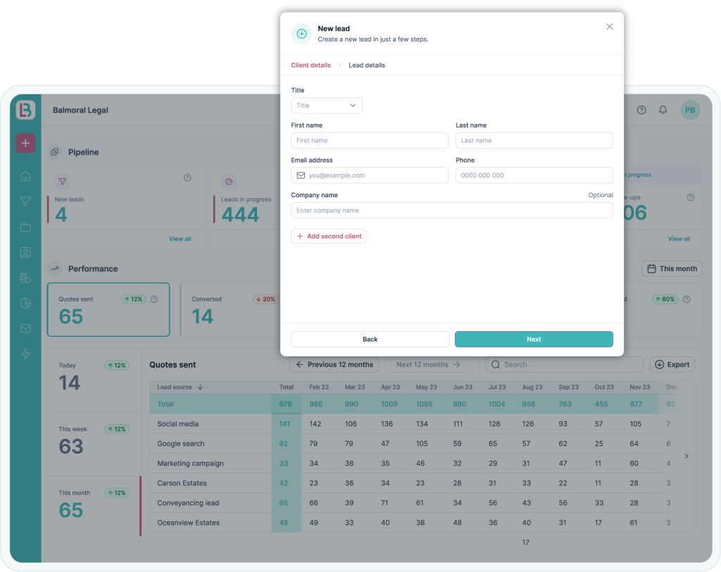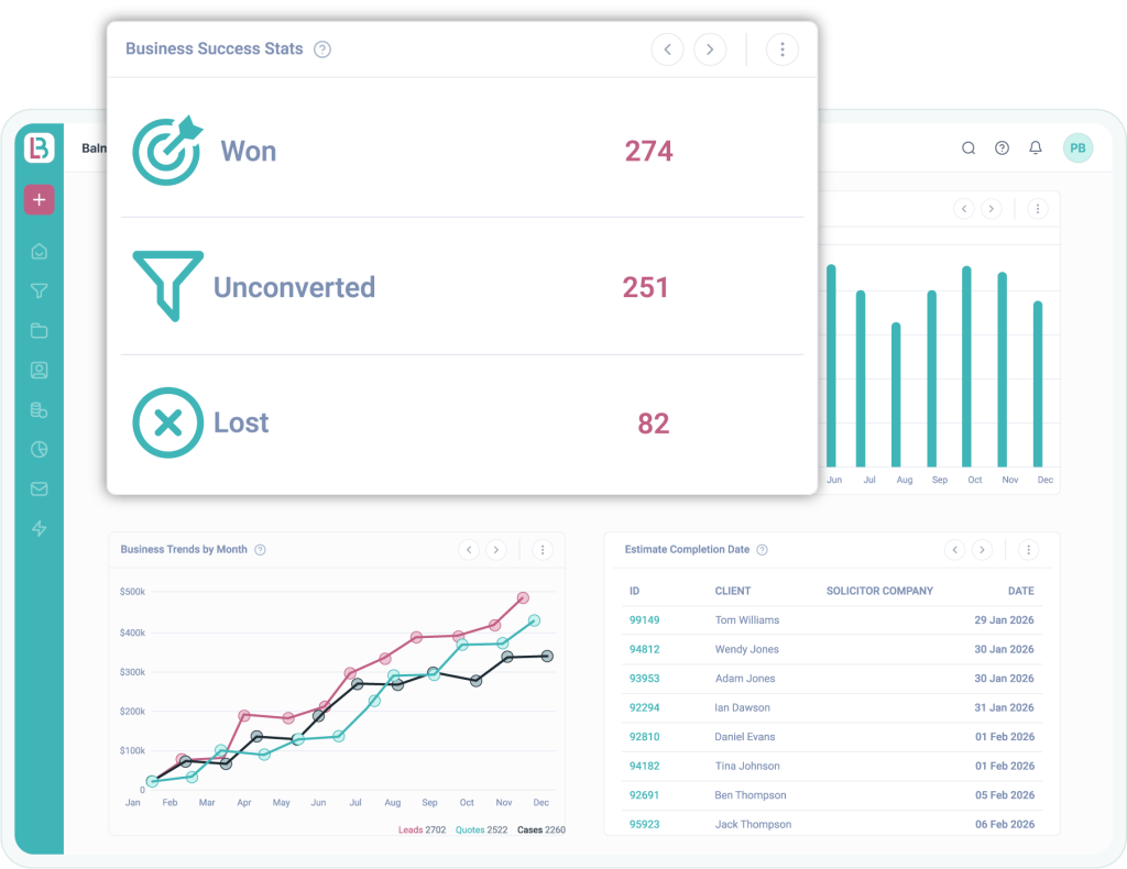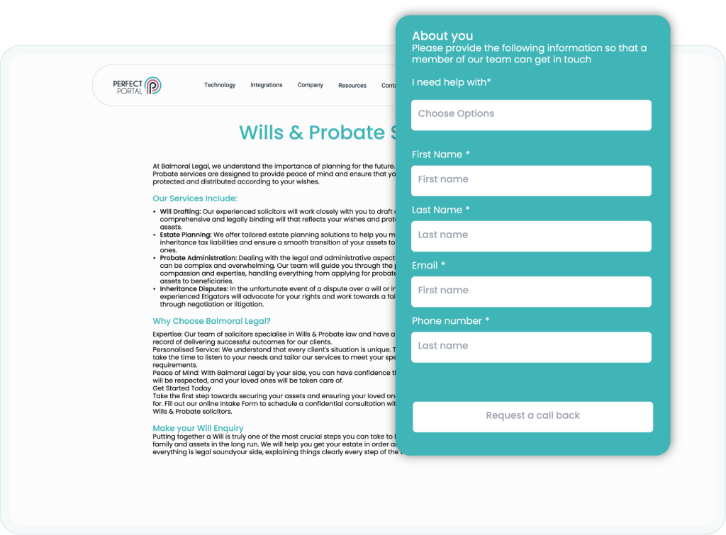 Capture enquiries through instant quotes and Intake Forms on your website, add leads directly into the Solicitor Portal, and give referrers their own Portal to submit work straight into your system.