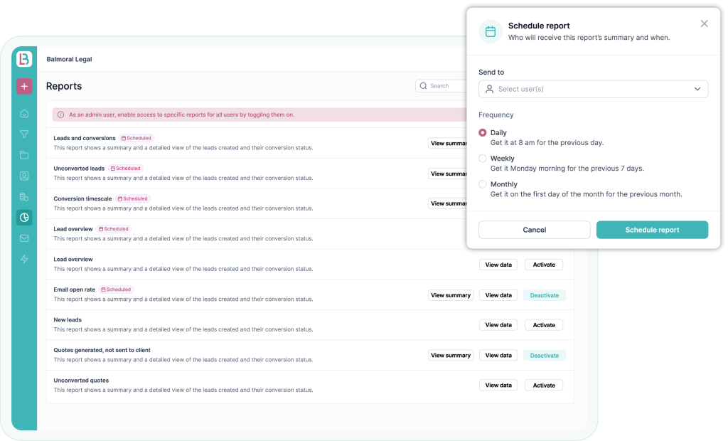 See exactly how your firm is performing with clear dashboards, reporting, reviews, integrations, and automations that bring pipelines, campaigns, and outcomes together - helping you make smarter decisions and stay in control.